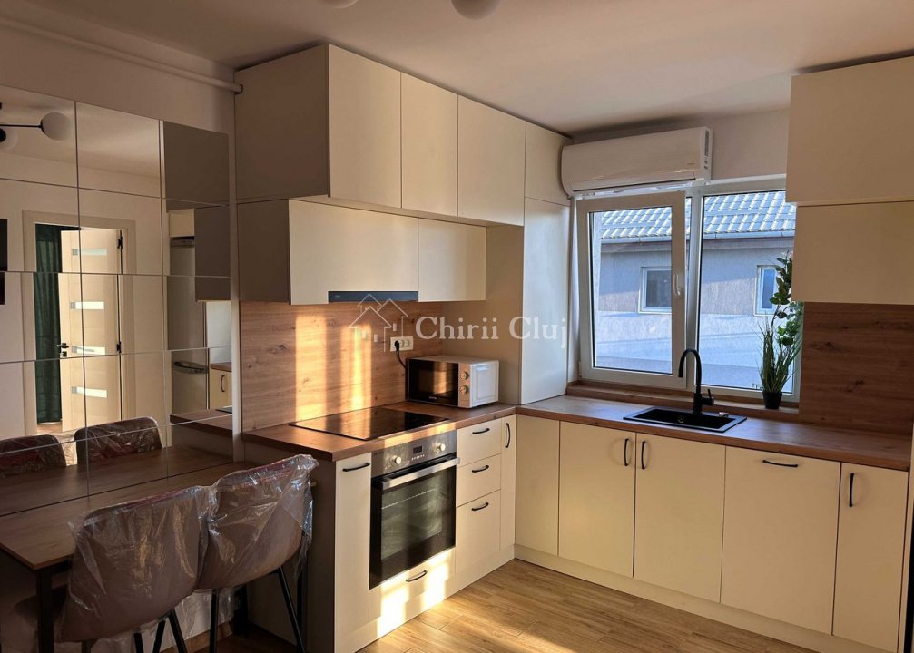 Chirii Cluj va prezinta spre inchiriere un apartament cu 2 camere semidecomandat in cartier Bulgaria, zona Hornbach. Apartamentul se afla la etajul 3 unui imobil nou dispus pe 4 niveluri, avand o suprafata utila de 45 mp. Compartimentarea a fost gandita astfel: - 1 living tip open-space cu bucatarie - 1 dormitor cu pat matrimonial, iesire la balcon, leagan si vedere spre apus - 1 baie moderna, dotata cu cada jacuzzi - hol cu dressing generos In plus, imobilul se afla la prima inchiriere, este foarte luminos pe tot parcursul zilei si dispune de aer conditionat, centrala proprie si bucatarie complet utilata (plita pe inductie, cuptor electric, masina de spalat vase). Este pet friendly si beneficiaza de numeroase locuri de parcare neamenajate in zona, pentru un plus de confort. Contactati-ne pentru informatii suplimentare sau pentru a stabili o vizionare!