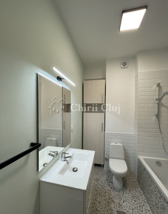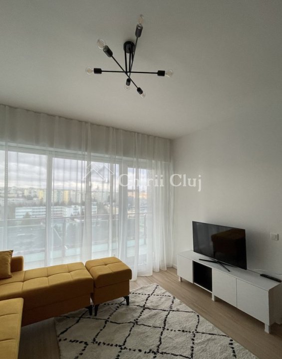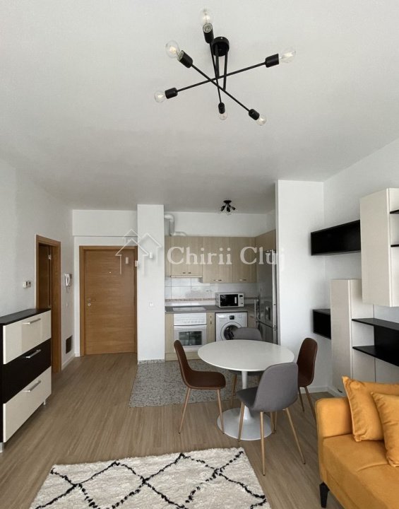 Chirii Cluj va propune spre inchiriere un apartament situat in zona Iulius Mall, cartierul Gheorgheni. Desfasurat pe o suprafata utila de cca 40 mp, este compartimentat in living plus bucatarie open space, dormitor, baie si un balcon generos de peste 8 mp, dispus pe toata latimea apartamentului. Apartamentul beneficiaza de geamuri termopan/tamplarie PVC si incalzire centrala pe imobil, automatizata prin termostat propriu apartamentului. Fiind situat intr-un ansamblu imobiliar, supravegheat video, beneficiaza de acces restrictionat pe baza de cartela, bariera access auto si paza contractata 24/7. Apartamentul se inchiriaza ultrafinisat, mobilat complet (bucatarie, living, dormitor) si utilat la cheie (inclusiv electrocasnice de baza plita/cuptor/hota, frigider, cuptor microunde, masina de spalat haine, TV HD in living). In afara spatiului util mentionat apartamentul beneficiaza si de o parcare subterana, Apartamentul este disponibil imediat. Pentru alte detalii au pentru ptogramarea unei vizionari va rugam sa ne contactati.