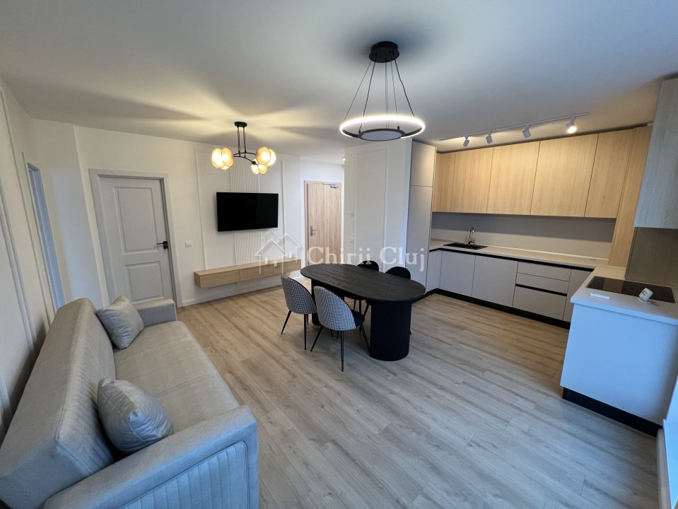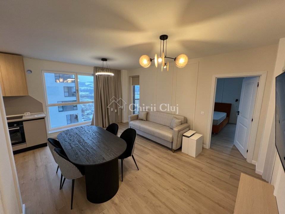 Chirii Cluj va propune spre inchiriere un apartament de lux cu 2 camere, situat in complexul rezidential Columna Residence, la etajul 5 al unui imobil nou cu regim de inaltime P+8E. Locuinta este semidecomandata si inteligent compartimentata, fiind compusa din: - Living open-space cu bucatarie - Dormitor cu dressing generos - Hol - Baie moderna - Balcon Apartamentul este mobilat modern, cu piese de calitate, si finisat la standarde premium, oferind un ambient elegant si confortabil. Dotari si beneficii: - Imobil nou construit, la standarde moderne ridicate - Sistem de aer conditionat multisplit, pentru confort termic in fiecare incapere - Centrala termica proprie cu incalzire prin pardoseala - Usa antiefractie - Masina de spalat vase si rufe, hote, combina frigorifica, cuptor electric Localizarea este un mare avantaj: - Acces facil prin bariera din parcarea complexului comercial VIVO - La doar 1 minut de mers pe jos pana la VIVO Mall - Statii de transport in comun la doar 3 minute - Acces rapid catre oras, la aproximativ 2 minute cu masina In pretul de inchiriere este inclus un loc de parcare. Aceasta proprietate este ideala pentru persoanele care isi doresc un apartament modern, intr-un complex nou, cu acces rapid la facilitati si zone comerciale importante. Pentru detalii suplimentare si programarea unei vizionari, echipa Chirii Cluj va sta cu placere la dispozitie.