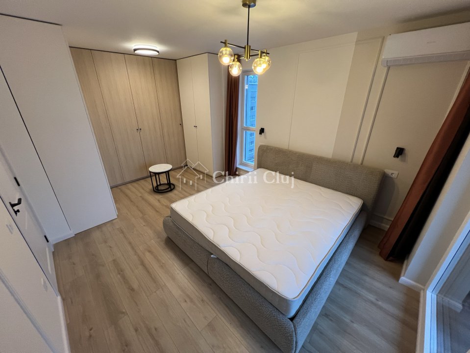 Chirii Cluj va propune spre inchiriere un apartament de lux cu 2 camere, situat in complexul rezidential Columna Residence, la etajul 5 al unui imobil nou cu regim de inaltime P+8E. Locuinta este semidecomandata si inteligent compartimentata, fiind compusa din: - Living open-space cu bucatarie - Dormitor cu dressing generos - Hol - Baie moderna - Balcon Apartamentul este mobilat modern, cu piese de calitate, si finisat la standarde premium, oferind un ambient elegant si confortabil. Dotari si beneficii: - Imobil nou construit, la standarde moderne ridicate - Sistem de aer conditionat multisplit, pentru confort termic in fiecare incapere - Centrala termica proprie cu incalzire prin pardoseala - Usa antiefractie - Masina de spalat vase si rufe, hote, combina frigorifica, cuptor electric Localizarea este un mare avantaj: - Acces facil prin bariera din parcarea complexului comercial VIVO - La doar 1 minut de mers pe jos pana la VIVO Mall - Statii de transport in comun la doar 3 minute - Acces rapid catre oras, la aproximativ 2 minute cu masina In pretul de inchiriere este inclus un loc de parcare. Aceasta proprietate este ideala pentru persoanele care isi doresc un apartament modern, intr-un complex nou, cu acces rapid la facilitati si zone comerciale importante. Pentru detalii suplimentare si programarea unei vizionari, echipa Chirii Cluj va sta cu placere la dispozitie.