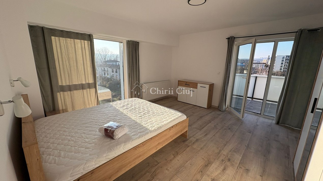 Chirii Cluj va propune spre inchiriere un apartament cu 2 camere semidecomandate, situat in Dambul Rotund. Locuinta este amplasata la etajul 4 unui imobil nou dispus pe 6 etaje, cu panorama, avand suprafata utila de aproximativ 56mp. Compartimentarea este eficient gandita si cuprinde: - 1 living tip open-space cu bucatarie si loc de luat masa - 1 dormitor - 1 baie - hol si 2 terasa de 20 mp; Apartamentul este pozitionat pe colt, asigura multa lumina naturala si caldura. In pret este inclus si un loc de parcare in subteran. Apartamentul se inchireaza complet mobilat si utilat. Este situat intr-o zona linistita cu acces facil catre mijloacele de transport in comun, magazine, farmacii si centre comerciale. Contactati-ne pentru mai multe informatii sau pentru a programa o vizionare!