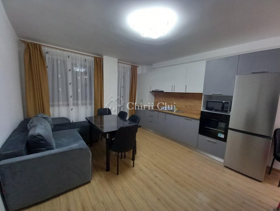 Chirii Cluj va propune spre inchiriere un apartament cu 2 camere semidecomandate, situat in Beta Residece, intr-un complex nou rezidential. Locuinta este amplasata la etajul 1, avand suprafata utila de aproximativ 50 mp. Compartimentarea este eficient gandita si cuprinde: - 1 living generos, tip open-space cu bucatarie, canapea cu zona de relaxare si loc de luat masa - 1 dormitor, dotat cu pat matrimonial si garderoba - 1 baie, dotata cu cada - 1 balcon - hol In plus, apartamentul beneficiaza de un loc de parcare subteran. Locuinta este dotata cu toate electrocasnicele si mobilierul necesar, iar confortul este garantat de sistemul de incalzire in pardoseala. Contactati-ne pentru mai multe informatii sau pentru a programa o vizionare!