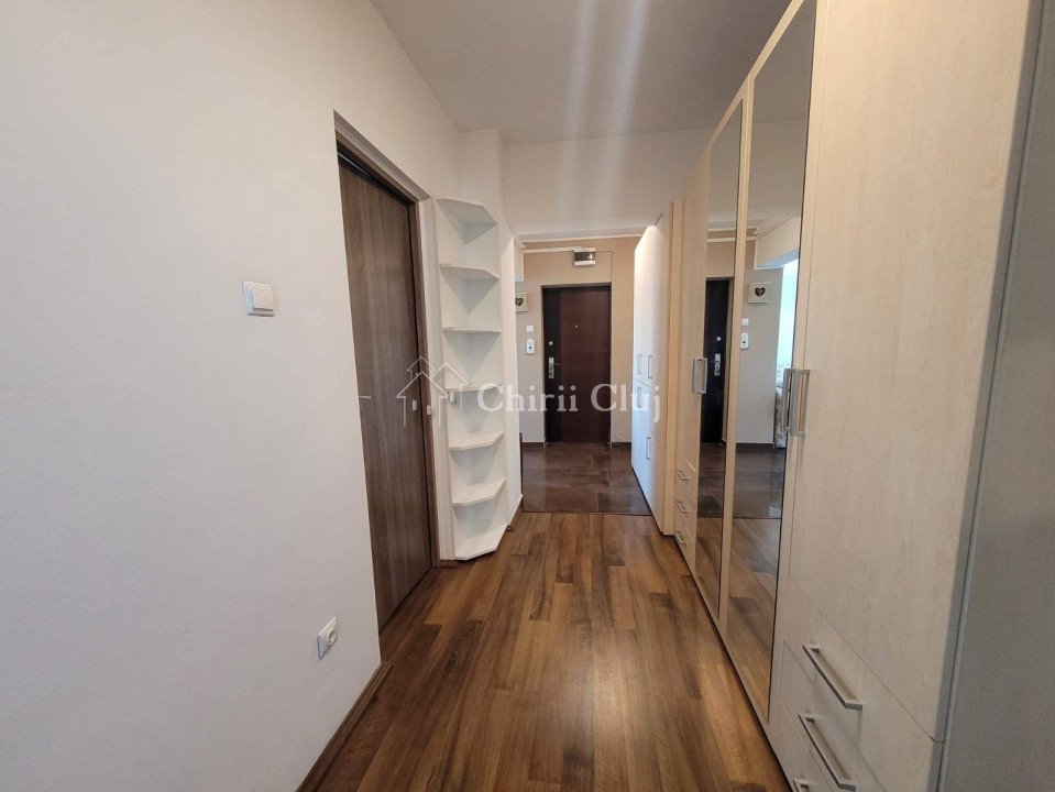 Cauti sa inchiriezi un apartament spatios, care sa te faca sa te simti cu adevarat ,,acasa"? Situat la etajul 8 al unui imobil cu regim de inaltime S+P+8, construit in '90, din beton armat, dotat cu lift, interfon, izolat termic si orientat Sud si Est, acest apartament poate fi exact ce cauti. Zona este una foarte buna, avand acces direct spre centru sau UMF. De asemenea, in zona se mai gasesc farmacii, parcuri, magazine etc. Cei 65 mp utili sunt compartimentati dupa cum urmeaza: - 1 hol - 1 living cu bucatarie open space - 1 dormitor - 1 camera folosita pe post de birou - 1 baie - 1 balcon generos care confera o priveliste extraordinara asupra orasului. Finisajele sunt clasice si moderne si se evidentiaza prin: - parchet laminat - gresie - faianta - vopsea lavabila - geamuri termopan - usa metalica la intrare - usi celulare in interior. Momentan apartamentul nu dispune de parcare dar se poate parca la liber sau se poate inchiria parcare. Pentru mai multe detalii sau programarea unei vizionari va invitam sa ne contactati! Echipa Chirii Cluj