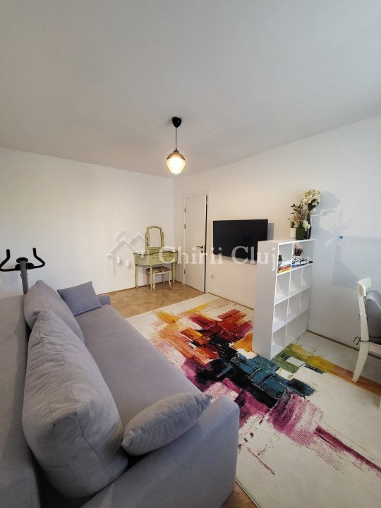Chirii Cluj va prezinta spre inchiriere un apartament cu 2 camere decomandat, care ofera un spatiu placut si bine intretinut, in cartierul Manastur. Apartamentul se afla la etajul 4, al unui imobil dispus pe 10 niveluri, avand o suprafata utila de 45 mp. Compartimentarea a fost gandita astfel: - 1 dormitor, cu pat matrimonial si dressing - 1 camera de zi, cu birou - 1 bucatarie, complet echipata - 1 baie moderna, cu bideu - hol, cu spatiu de depozitare In plus, imobilul beneficiaza de un balcon, generos, de aproximativ 8 mp si bicicleta statica pentru activitatii sportive. Este situat intr-o zona cu acces facil la statie, gradinite, scoli, facultati, magazine, sali de sport. In zona, gasiti baza sportiva La Terenuri, Kaufland si Vivo. Fiecare colt al apartamentului reflecta grija pentru detalii, iar camerele sunt largi și bine iluminate, pentru a crea un ambient relaxant. Apartamentul beneficiaza de o atmosfera calda si primitoare, cu un design modern care combina simplitatea cu rafinamentul. Este locul perfect pentru cineva care cauta un spatiu personal, fara prea multe complicatii, dar totodata un loc care sa fie placut si usor de intretinut. Contactati-ne pentru informatii suplimentare sau pentru a stabili o vizionare!