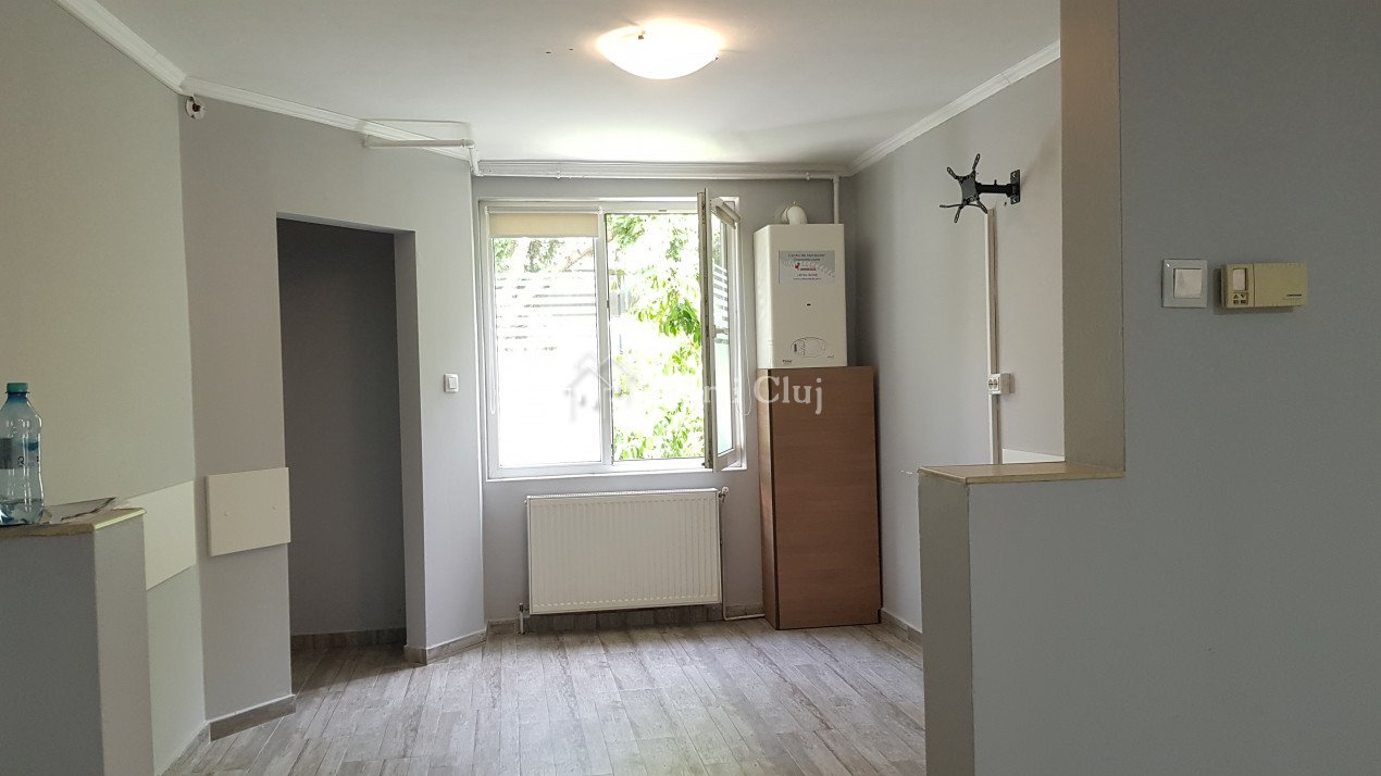 Va ofer spre inchiriere un apartament spatios de 80mp, situat la parter in Gradini Manastur, ideal pentru activitati de birou. Este compartimentat in sala de receptie / zona de asteptare, 3 incaperi decomandate, oficiu si grup sanitar cu dus. Contorizari individuale, centrala proprie, calorifere, sistem de alarma. Loc de parcare exterior, inclus in chirie.