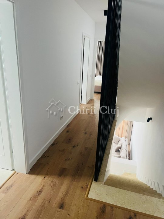Chirii Cluj va propune spre inchiriere un duplex cu 4 camere semidecomandate, situat in cartierul Buna ziua. Locuinta este amplasata pe un regim de inaltime S+P+2E, avand suprafata utila de aproximativ 160mp, completata de o curte de aproximativ 175mp. Compartimentarea este eficient gandita si cuprinde: Parter - 1 living tip open space cu bucatarie, complet utilata, loc de luat masa si canapea - 1 baie Primul etaj - 2 dormitoare, 1 baie si dressing Al doilea etaj - 1 dormitor, 1 baie, dressing si iesire la terasa In plus, imobilul dispune de un garaj subteran si loc de parcare in fata. In spatele casei exista o curte amanajata cu o terasa pavata si gazon. De asemenea casa are sistem de securitatea video si firma de paza. Contactati-ne pentru mai multe informatii sau pentru a programa o vizionare!