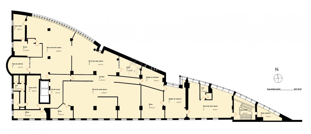 Spatiu birou 827mp posibilitate compartimentare, centru McDonalds